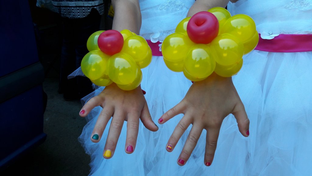Petits bracelets de ballons réalisés pour les jeunes demoiselles d'honneur pour un mariage à Baguer Morvan en Ille et Vilaine, à coté de Saint Malo, durant l'été 2016